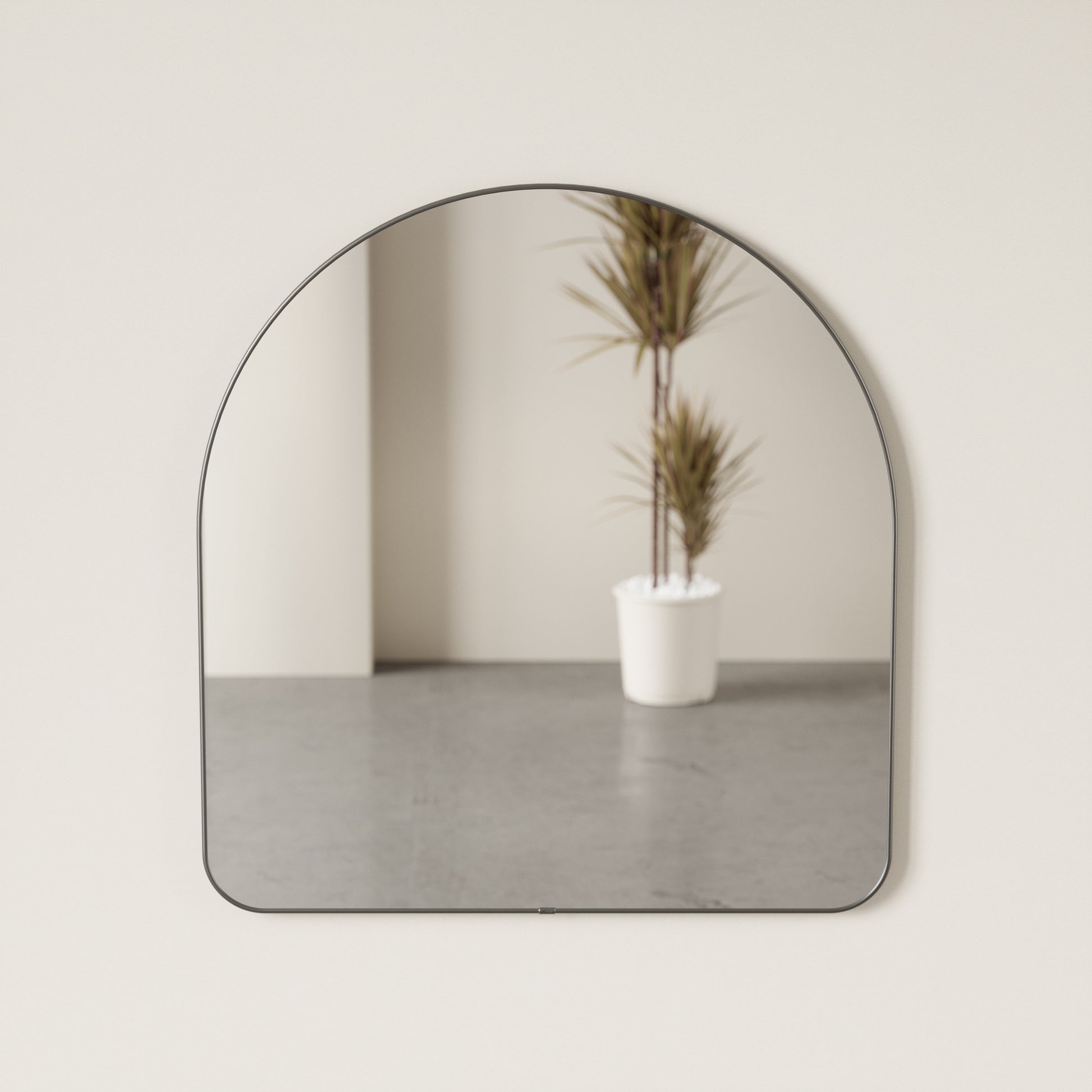 Hubba Arched brings a unique arch shape to the standard mirror. Featuring soft curves and a thin metallic finished rim, use Hubba in your entryway, bedroom or other living spaces to add a decorative touch, while instantly brightening your space. Measuring, 34.25 x 1.13 x 36.25" (87 x 3 x 92 cm), hardware included for wall mount, and anti-tip hardware included for leaning.
